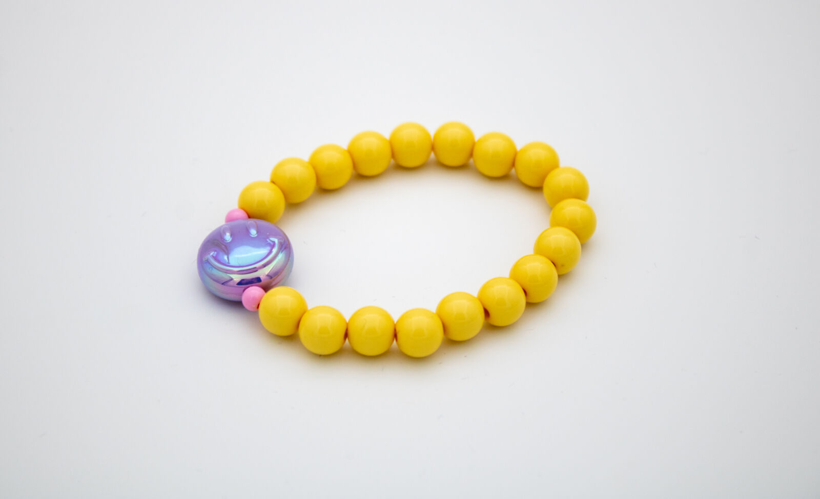 Deze speelse gele armband met smiley is een echte eyecatcher.