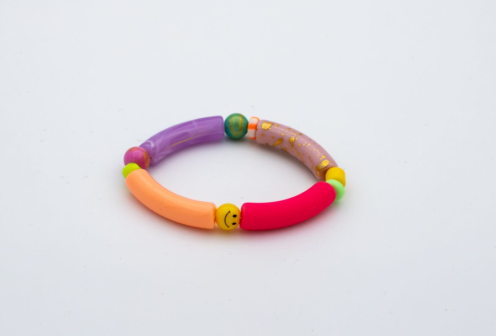 Deze speelse gekleurde armband met tube kralen is een echte eyecatcher.
