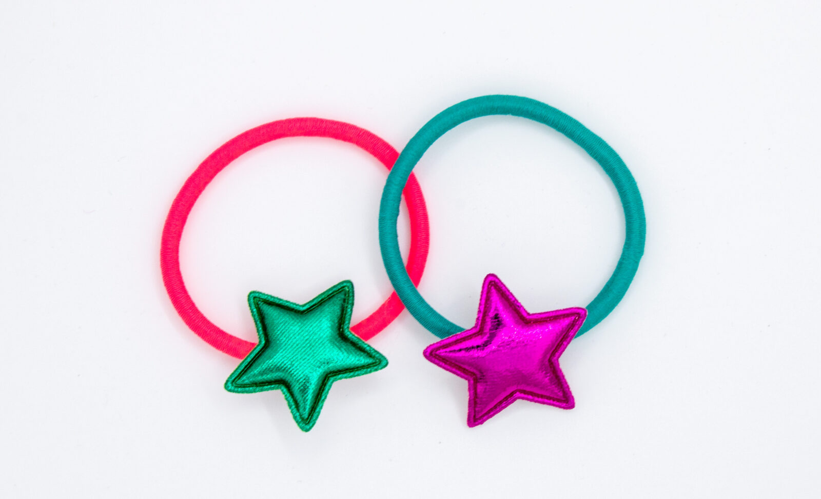 Leuke stoere haarelastiekjes in de vorm van een ster in kleur roze en groen.
