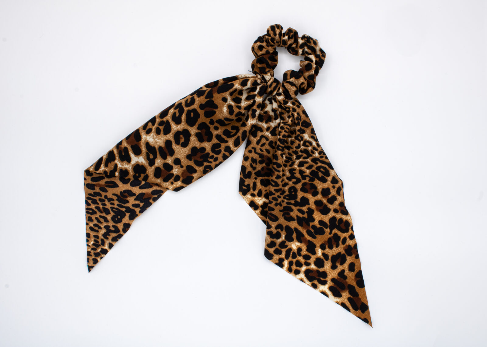 Deze leopard scrunchie met strik is een echte musthave.