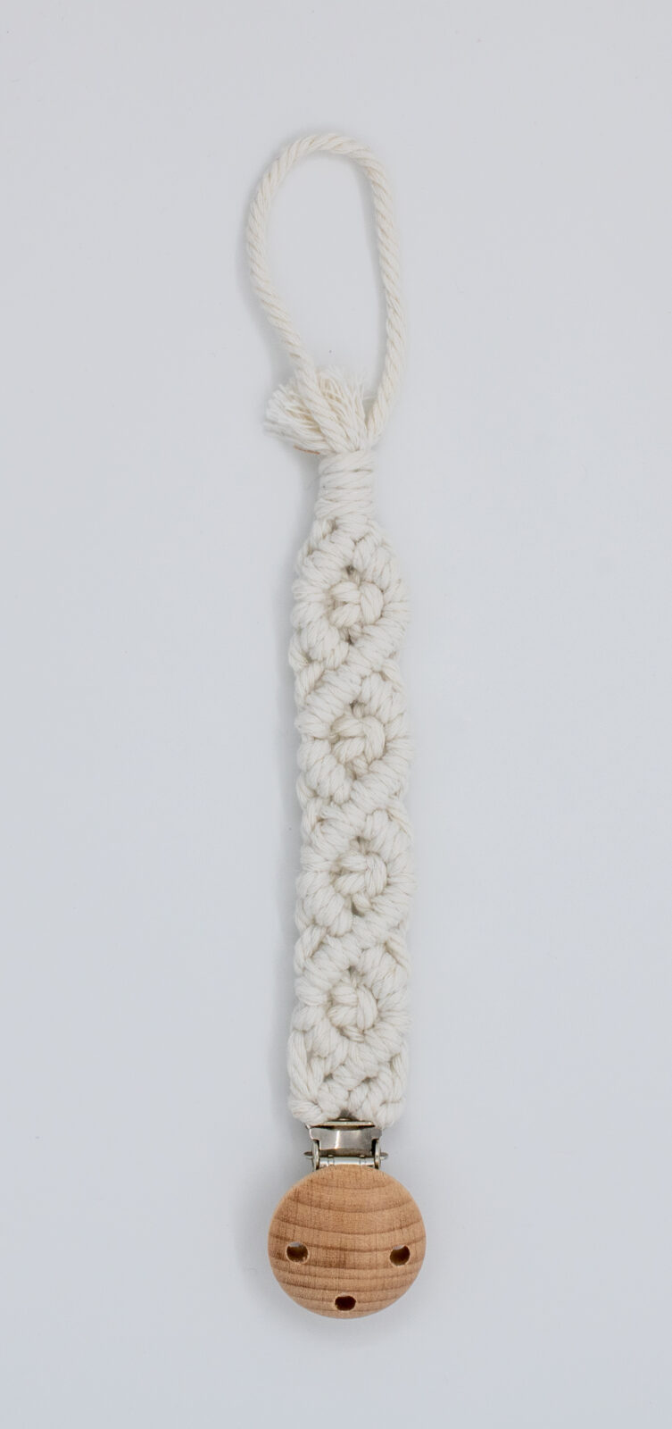 Deze geknoopte speenkoord  is de perfecte combinatie van lief en stijlvol.
