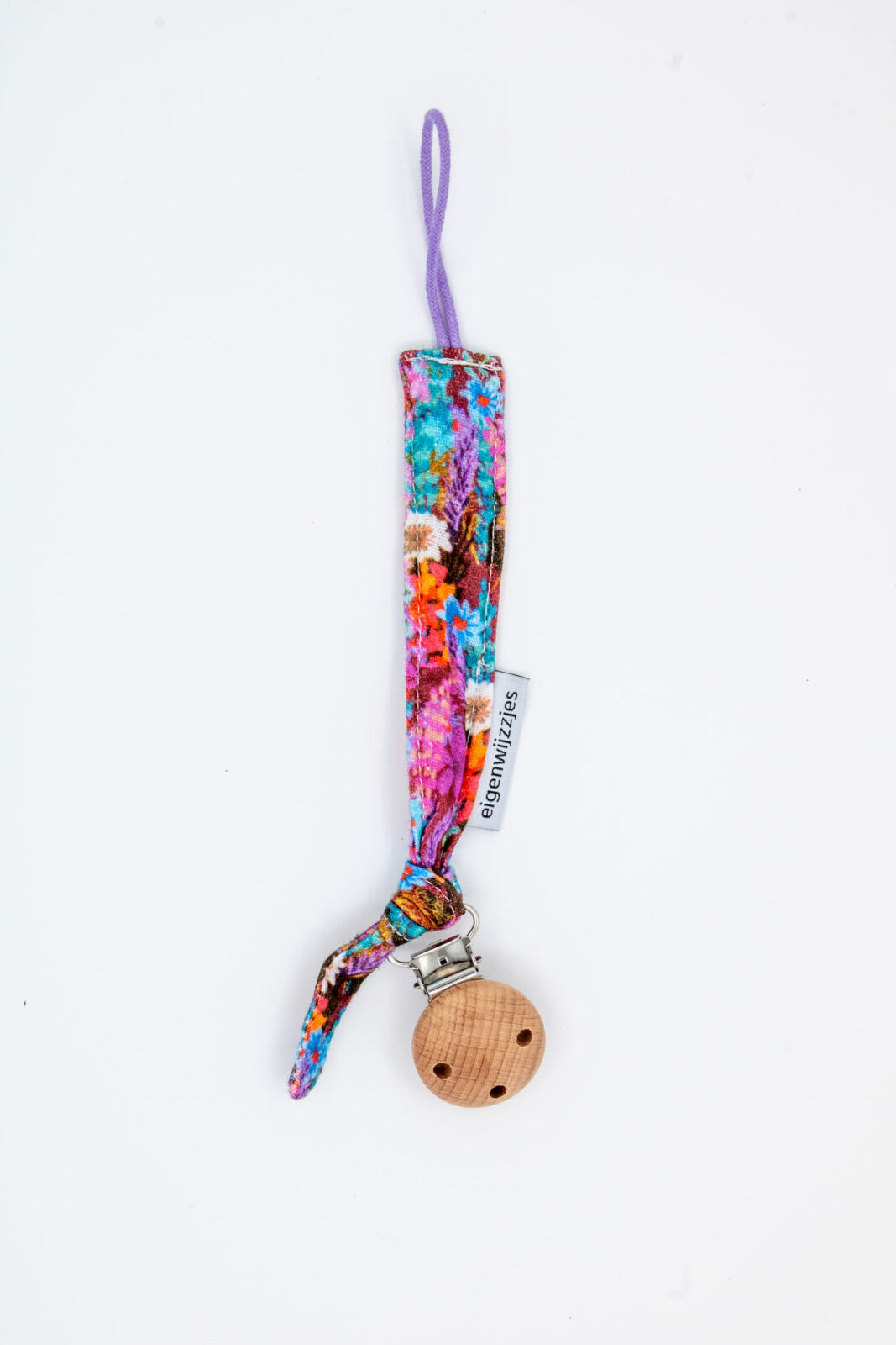 Deze bloemen speenkoord is de perfecte combinatie van stoer en stijlvol.