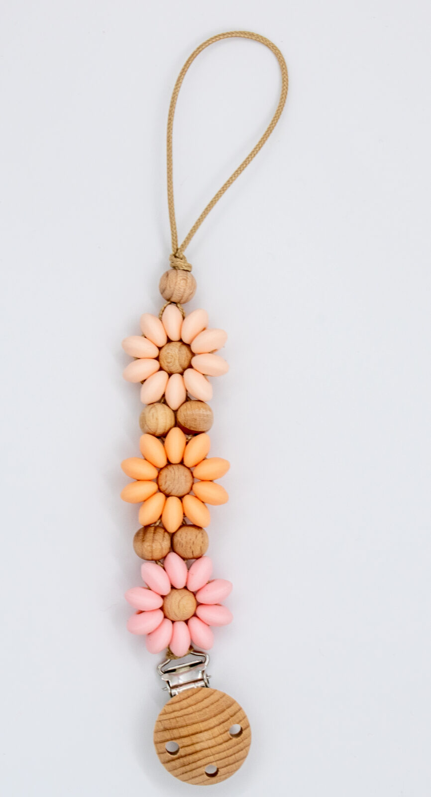 Deze speenkoord met bloemen is de perfecte combinatie van stoer en stijlvol.